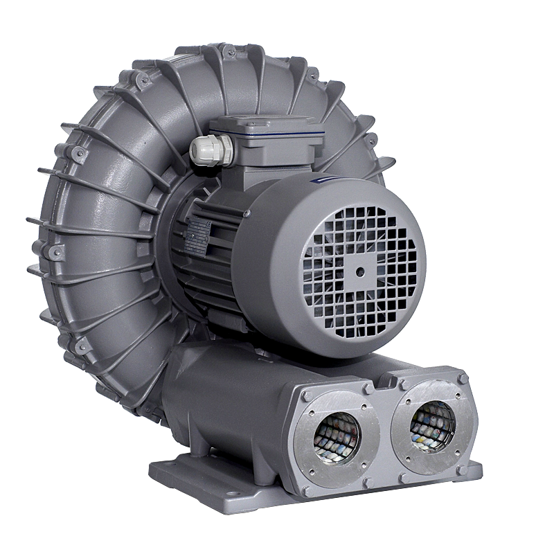 Вихревой вентилятор предназначен для транспорта сухих неагрессивных и взрывобезопасных газов или для выработки вакуума или высокого давления. Рабочее колесо вентилятора сбалансированное динамично в соответствии с ISO 1940, и изготовлено как и корпус с шумоподавителем из алюминиевых сплавов. Вентилятор может работать как при горизонтальном так и при вертикальном размещении. Вентиляторы с ременным приводом или с индивидуальными характеристиками может изготавливаться под заказ. Цвет вентилятора на заказ может быть заменен на любой из RAL палитры, в стандарте поставляется в сером цвете RAL7042